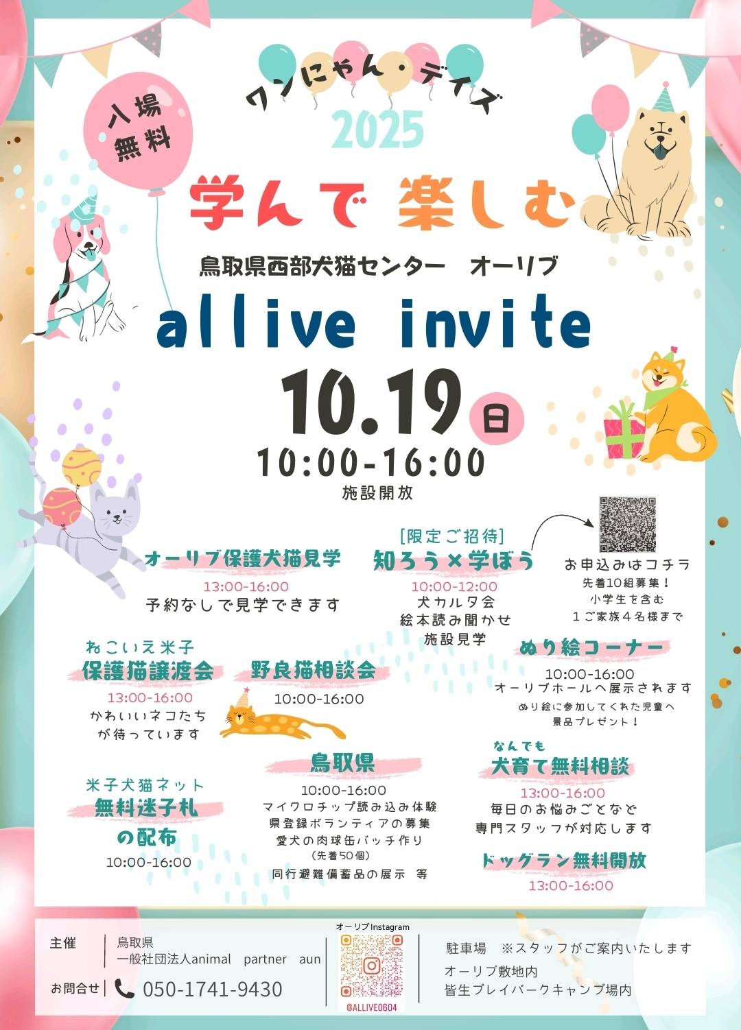 この日はオーリブで「ワンにゃん・デイズ2025 学んで楽しむ allive invite」が開催されます。