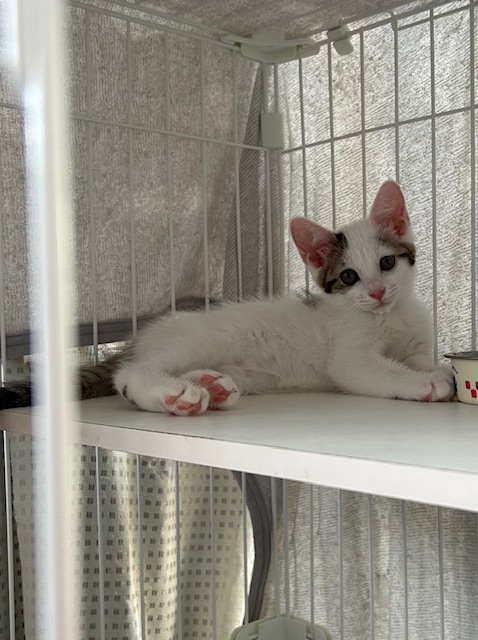 | 性格・特徴 | 兄弟の中で唯一の女の子ですがご飯の時は兄弟を押し除けて食べようとします。 ご飯の時は1番に鳴いて催促します。 猫風邪により目の周りに軽度の赤みがあります。 |