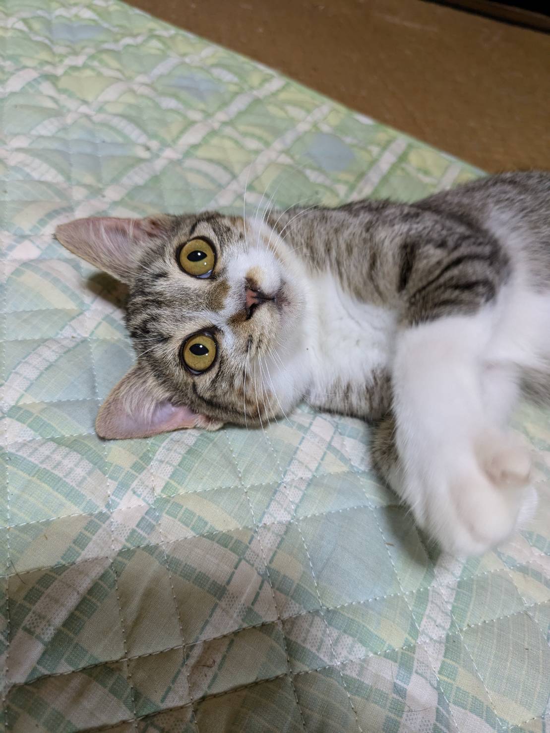 | 性格・特徴 | 月齢4カ月なのに、一緒に保護した2匹にオッパイを吸われても嫌がらない、優しいお姉さんみたいな子です。 |