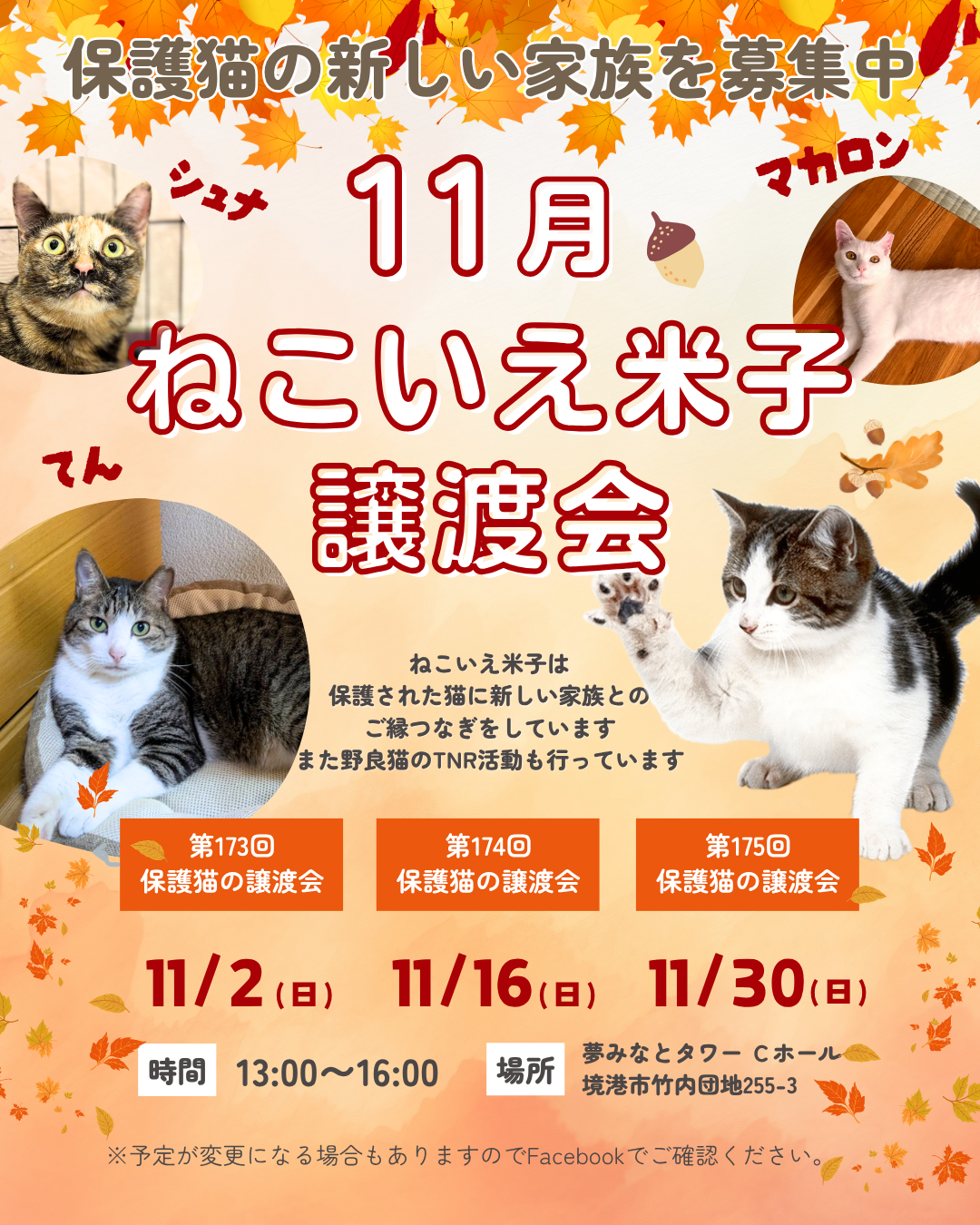 保護猫の譲渡会11月16日(日)13:00~16:00