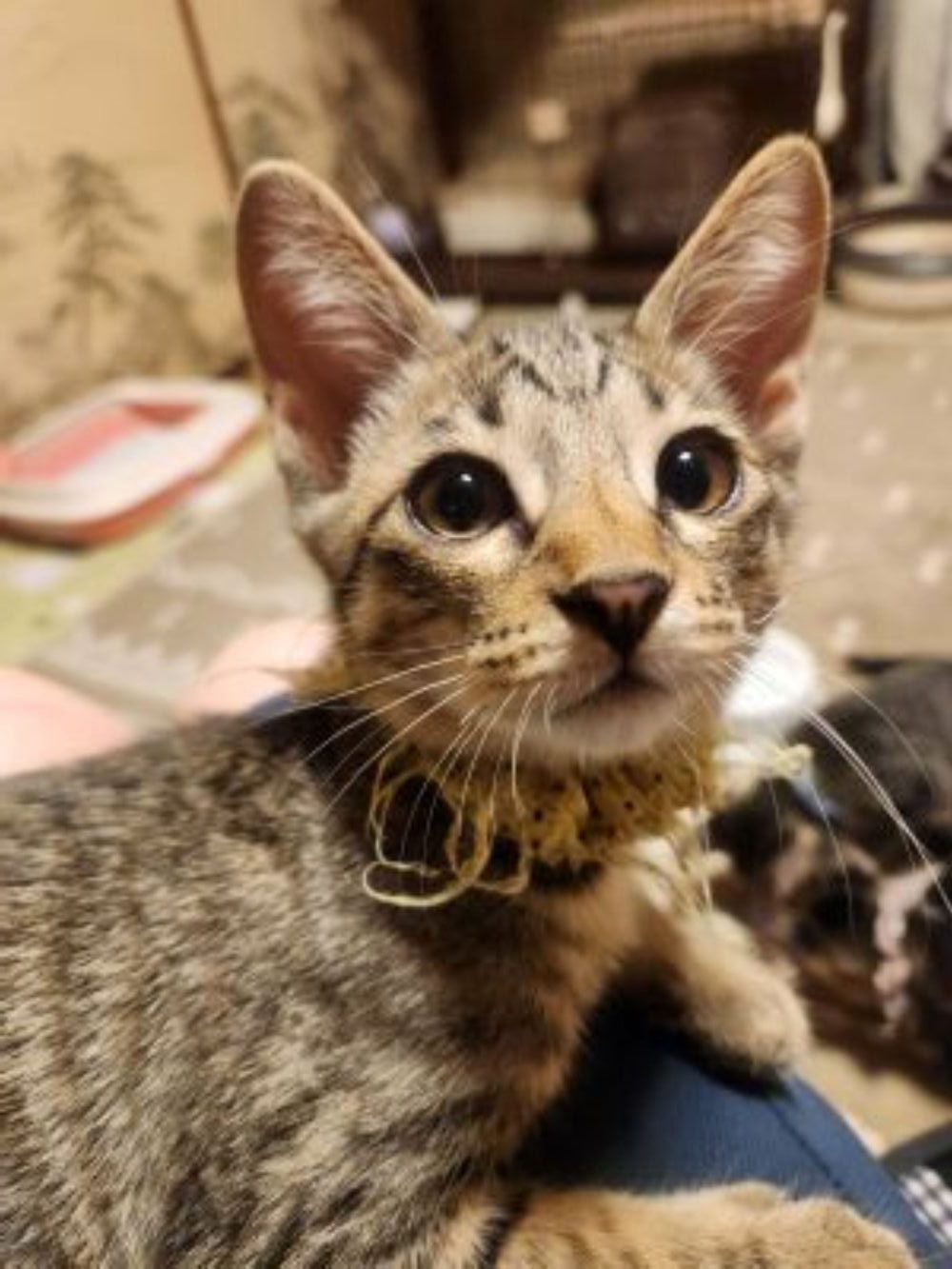 | 性格・特徴 | 兄妹の中で一番大きくて、肉球が熊さんみたいです。 食いしん坊で、他の子のご飯まで食べようとするくらいです。 頭を撫でられるのが好きみたいです。 |