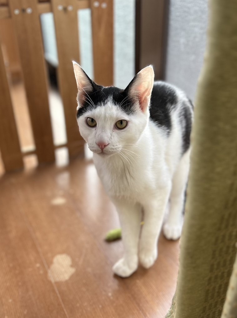| 性格・特徴 | ハチワレの男の子です。 体もだいぶ大きくなってやんちゃでとっても元気です。 兄妹といつも遊んでいます。 |