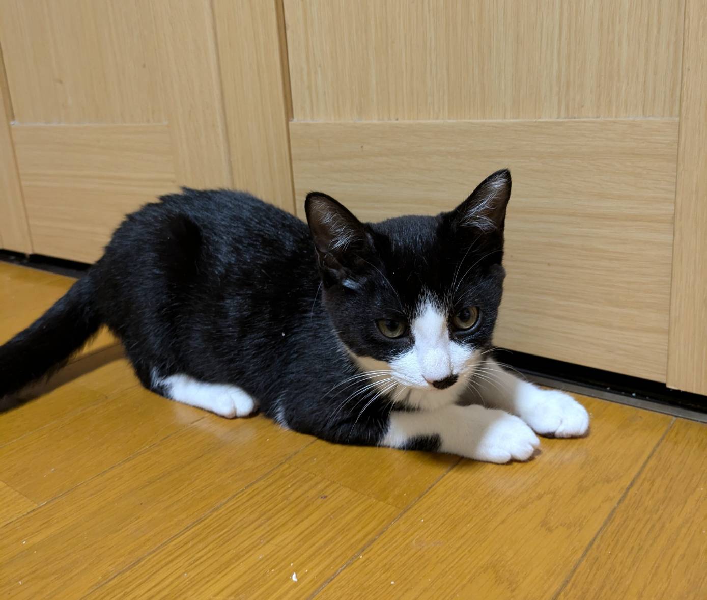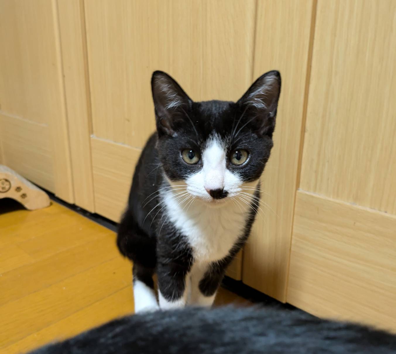 | 性格・特徴 | 保護から二日目にはゴロゴロ喉を鳴らしながら甘えてくれるようになった、とても人懐っこい子です。 おもちゃにじゃれたり、兄妹たちと追いかけっこしたり、毎日愉快に過ごしています。 うたちちゃん、げんちゃん、にこちゃん、だいずちゃん、ののちゃんは保護日はそれぞれ違いますが、外猫のお母さんの愛情を一杯受けて育った仲良し兄妹です。 人が座ると兄妹みんなが膝の上に乗ってきて甘えの大合唱です!満員で自分の場所が確保できないと背中にも乗ってきたりします。 |